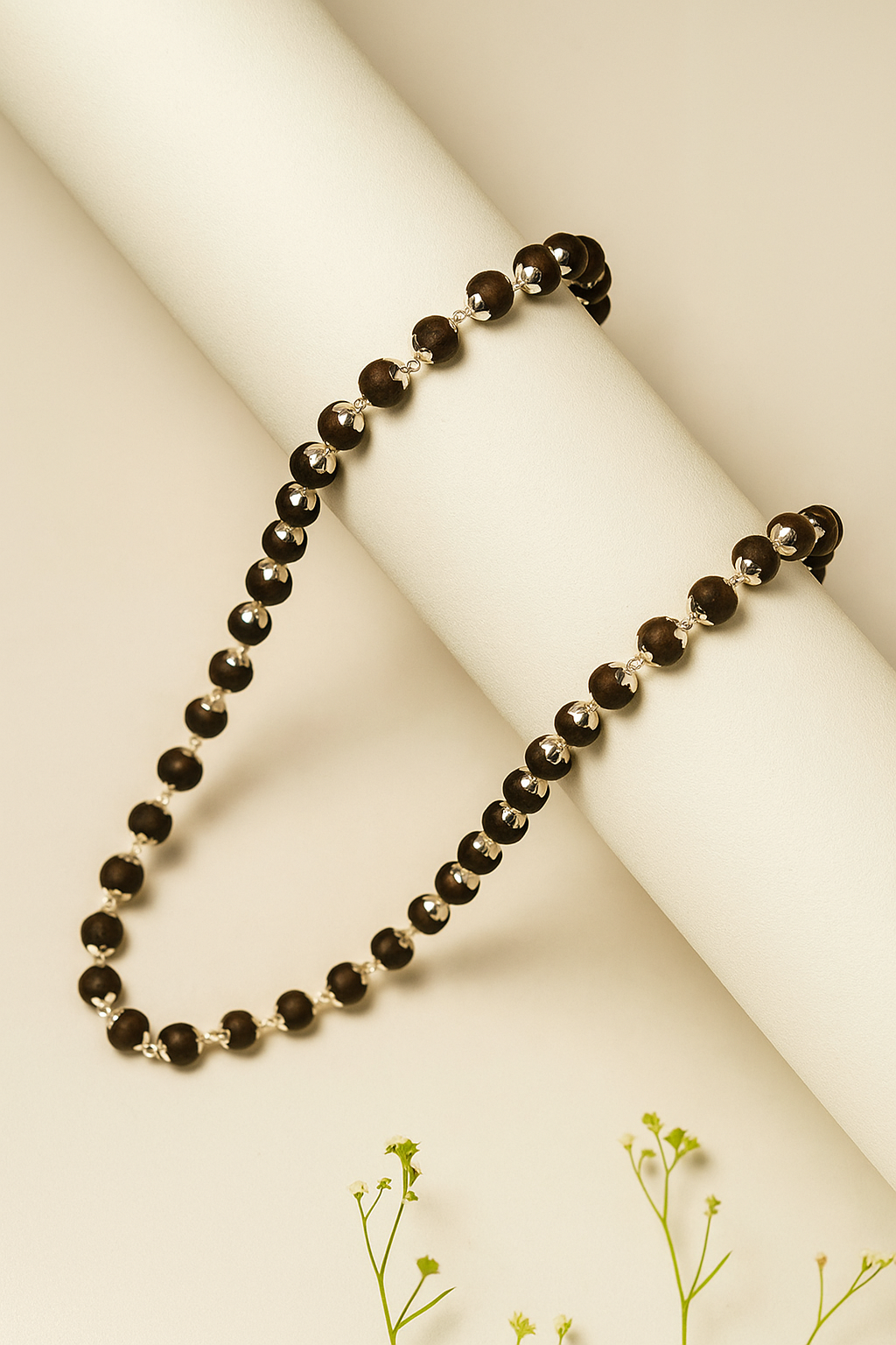 Silver Plated Karungali Mala - Natural Ebony Wood